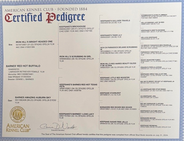 Buffy is out of Champion Pointed Iron Hill’s Bright Headed One and our retired Aubrey.
