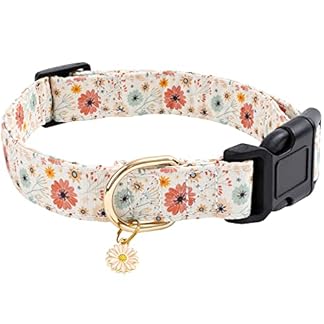 Faygarsle Cotton Designer Dogs Collar Cute Flower Dog Collars for Girl Female Small Medium Large Dogs with Flower Charms L