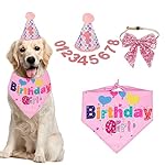 ADOGGYGO Dog Birthday Party Supplies, Boy Girl Dog Birthday Hat with Numbers Dog Puppy Birthday Bandana Hat Bow Set (Pink) (X-Large, Pink)